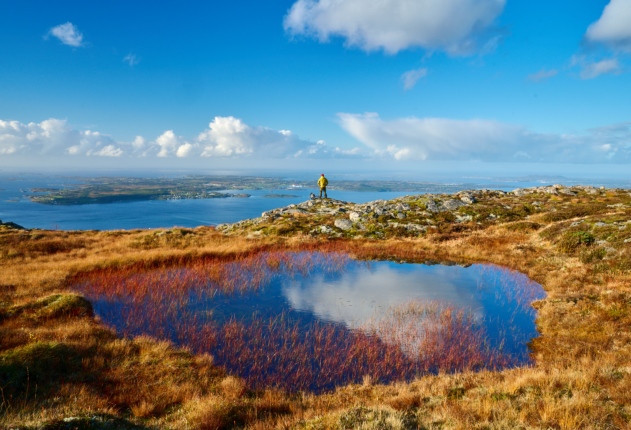 Eidskremheia 493 moh gir deg ei fantastisk utsikt utover hav, fjell og øyer.